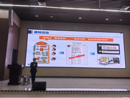 宣讲活动以生动有趣的暖场互动拉开序幕。刁爱华教授通过反诈知识抢答、虚假链接识别小游戏等形式,迅速调动现场气氛,引导学生主动思考。“收到‘客服退款’短信要求点击链接,该怎么办?”“陌生人以‘高额返利’邀请刷单,是否可信?”一系列贴近校园生活的问题引发学生热烈讨论,为后续宣讲内容做好铺垫。